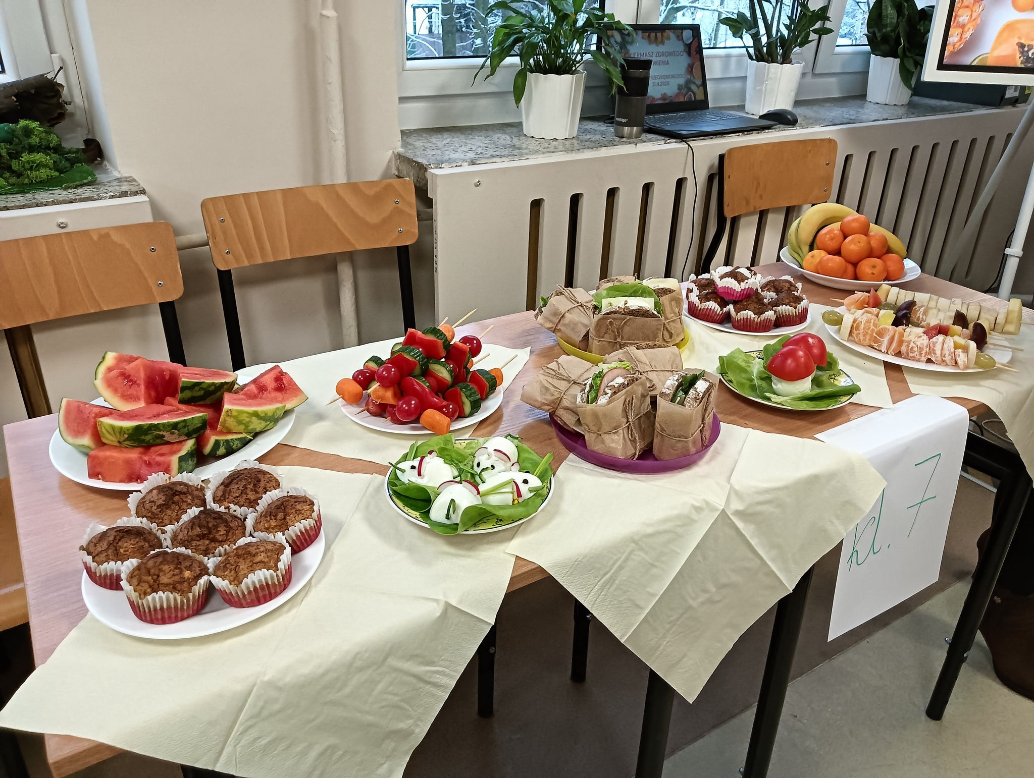 Uczniowie klas I–VII przygotowali kolorowe, pomysłowe i przede wszystkim zdrowe przekąski, kanapki i napoje. Każde stoisko zachwycało kreatywnością i zaangażowaniem. Widać było, że wszyscy włożyli w to wydarzenie mnóstwo serca!