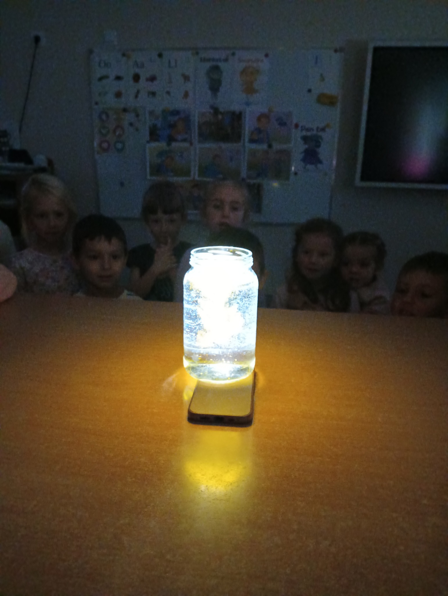 Po rozmowach przyszedł czas na eksperymenty: spadające meteoryty, lampa lawa, fluorescencyjne dinozaury i atrament sympatyczny.