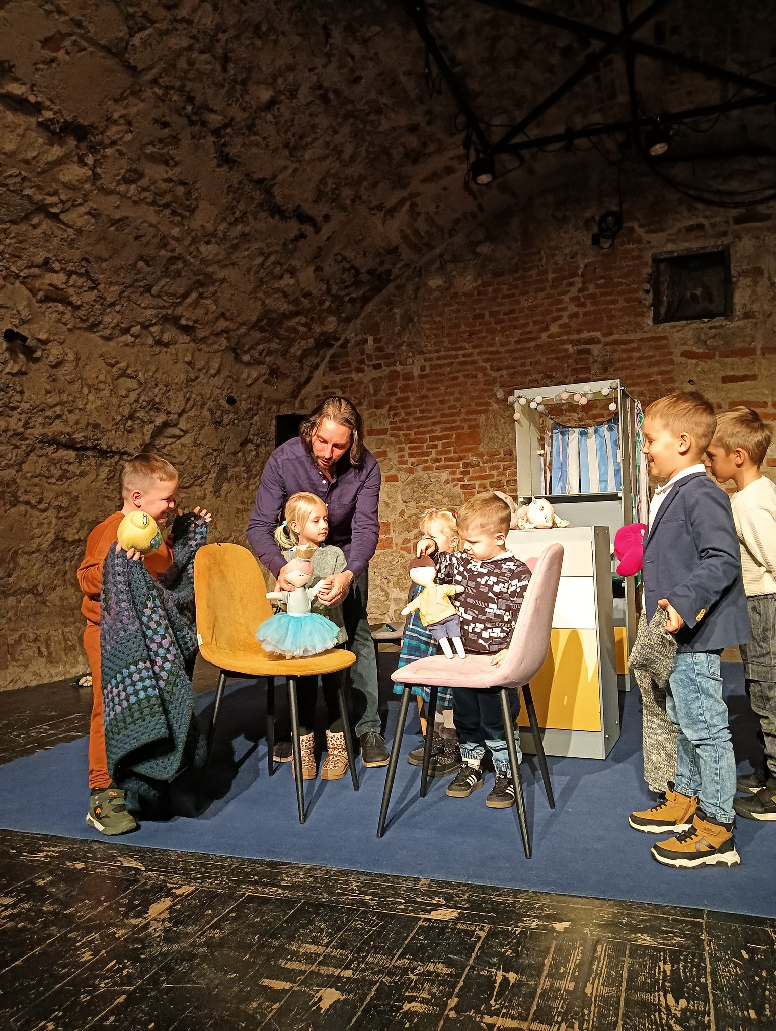 Po spektaklu dzieci miały okazję uczestniczyć w warsztatach, podczas których mogły stanąć na scenie, dotknąć teatralnych rekwizytów oraz wcielić się w rolę aktorów i otrzymać głośne brawa!