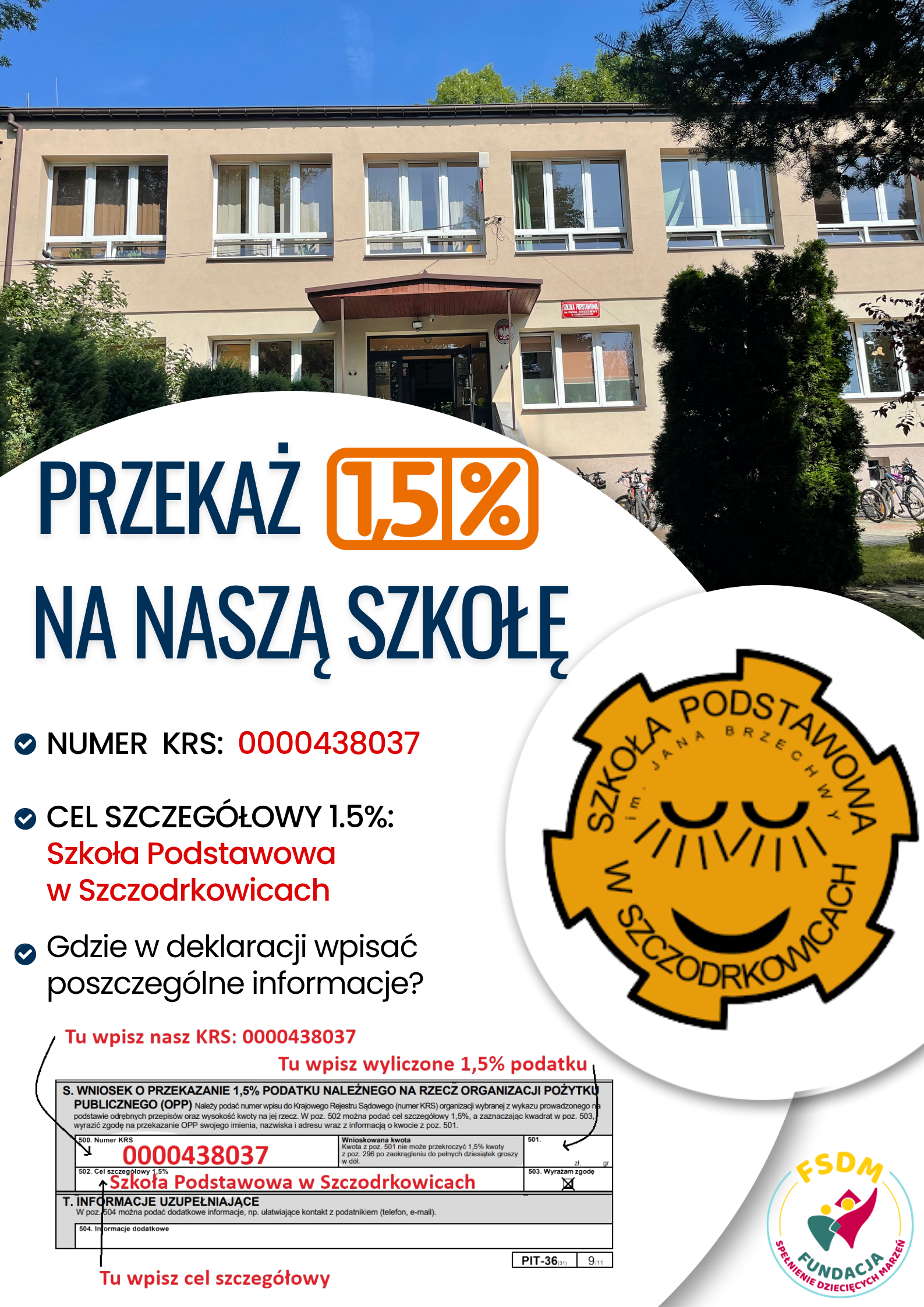 Prosimy o wsparcie naszej szkoły w postaci 1,5% podatku z 2025 r.
