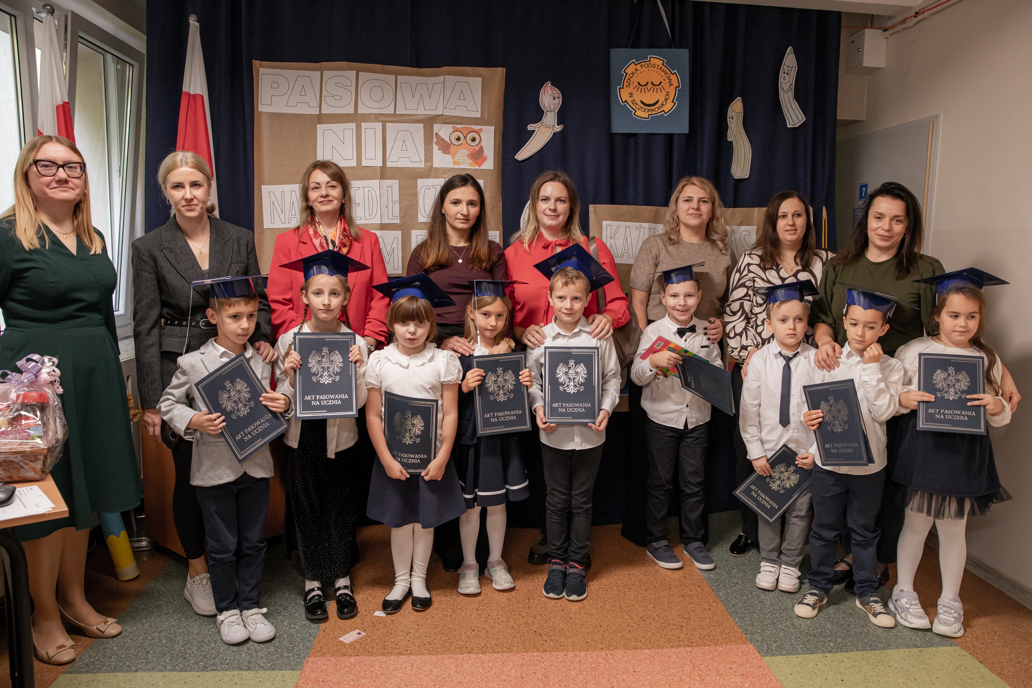 Z tej okazji dzieci otrzymały pamiątkowe dyplomy, książki Patrona naszej Szkoły Jana Brzechwy oraz bilety do Teatru Groteska na spektakl pt. „Tarabumba ale Cyrk”. Dodatkowym potwierdzeniem przyjęcia pierwszoklasistów do braci uczniowskiej był odbiór pierwszej szkolnej legitymacji.